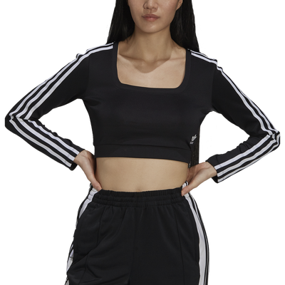 Long sleeves, cropped length, and a chic low square neckline! The adidas 3 Stripe Longsleeve T-Shirt is a fitted essential in a unique style. This transitional fashion piece is identified by the adidas’ signature 3-Stripes and a distinctive Trefoil logo. Wear it with a slim fit skirt or regular fit joggers for a casual look and layer it up for slightly colder weather.